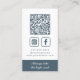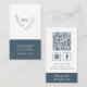 Elegant Monogram Wreath Neutral Slate Grey Vertical Business Card with Slogan... The front of our unique slate coloured business card features an elegant botanical wreath bordering your two monogram initials in slate grey on a white background. Your name and title (or company name) appear in white ink on a neutral slate rectangle bordering the bottom of the business card, giving an authoritative structure to balance the delicate leafy wreath. On back of the card are your phone number, social media contact info, website address and QR code linking to additional information. The slate grey section on bottom contains your business motto or tagline. Example text currently shows "Always take the high road" in white script typography. If you prefer, you can delete the text for the motto. All text and the QR code can be easily revised on the personalisation template.