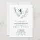 Monogram Wreath QR Code Emerald Green Wedding Invitation