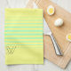 Monogram Yellow and teal Stripes Tea Towel