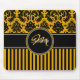This modern and trendy monogrammed golden harvest or mustard yellow, black, and white damask with stripes pattern mousepad has template boxes for you to personalise with your own name, initials, monogram, or other text. If you need any help customising this trendy mousepad, please email niteowlstudio@gmail.com.