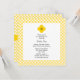 Monogrammed yellow quatrefoil pattern on white background bridal shower invitations.