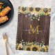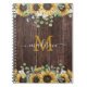 Monogram Yellow Sunflower Brown Wood Recipe Notebook