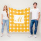 Monogram Yellow White Gingham Pattern Fleece Blanket