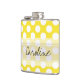Monogram Yellow White Trendy Fun Polka Dot Pattern Hip Flask