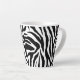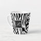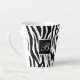 Trendy monogram latte coffee mugs designed with a monogram name initial you can personalise online with a stylish black and white zebra animal print pattern in the background that adds a touch of modern style.