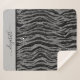 Black and Grey-Silver Zebra Print Sherpa Blanket. Monogram it with your name or text.