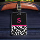 Monogram Zebra Print & Pink Accent Luggage Tag
