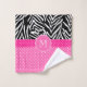 Girly monogrammed black and white zebra with hot pink and white polka dot pattern towel set. The design features a black and white zebra pattern and small white polka dots on hot pink. In the middle there is a hot pink circle with your custom initial.