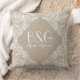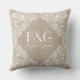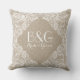 Monogramed Beige Linen And White Lace Frame 1a Cushion