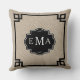 Elegant beige linen texture (image of linen) background with black vintage frame and customisable monogram.