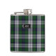 Handsome flask with the classic dark blue, white and green Black Watch Dress tartan plaid pattern. Personalise the three letter monogram, on the metal looking plaque, to suit your needs. Great gift idea for any guy and especially great as a wedding party gift for groomsmen.