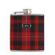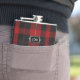 Handsome flask with the classic and red, black, and white clan Cunningham tartan plaid pattern. Personalise the three letter monogram, on the metal looking plaque, to suit your needs. Great gift idea for any guy and especially great as a wedding party gift for groomsmen.