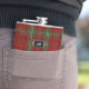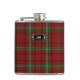 Stylish drinking flask with the traditional red and green classic clan Morrison tartan plaid pattern. Personalise the two letter monogram, on the metal looking plaque, to suit your needs. Great gift idea for any guy and especially great as a wedding party gift for groomsmen.