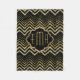 Monogramed Gold Glitter & Zigzag Chevron Pattern Fleece Blanket