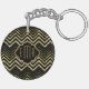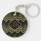 Monogramed Gold Glitter & Zigzag Chevron Pattern Key Ring