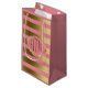 Monogramed Gold Stripes & Pink Geometric Pattern Small Gift Bag