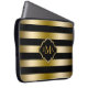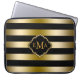 Monogramed Gold Tones & Black Stripes Pattern Laptop Sleeve