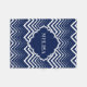 Monogramed Navy Blue And White Zigzag Chevron Fleece Blanket