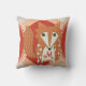 Monogramed Stylised Retro Orange Red Fox Pillow