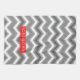 Elegant dark and light grey and white zigzag chevron pattern. Customisable monogram and red accents.