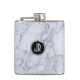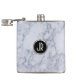 Monogramed White Marble Stone Pattern & Silver Hip Flask