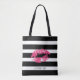Simple black and white stripes and pink lips. Customisable tote bag template