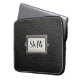Get the look of black leather and a silver metal frame with custom personalised monogram gift, with a printed executive corporate graphic.