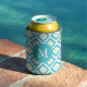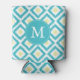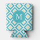 Monogrammed Aqua Yellow Ikat Diamonds Pattern Can Cooler