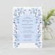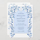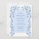 Elegant and simple watercolor Delft Blue and white flowers and vines around an arch shaped frame wedding invitation.