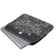 The sleeve is made of nice feeling material and seems very durable. I'm not sure how easy it'll be to clean, but the construction seems sound and the fabric is quick thick. I also like the double zipper. The printing is lovely and appears durable. The white on black contrast is nice, and the design very elegant.