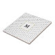 A black polka dot pattern is on a white background. Black monogram is on a white square in the centre. The square has a faux (no foil) gold trim.