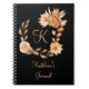 Personalised Monogrammed Black, Brown and Peach Colours Floral notebook or journal.