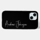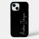 This monogrammed black iphone 15 case is trendy yet and classic. It features your name in a fabulous modern script font in white. It's simple and minimal.