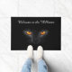 Add your name to this black cat eyes welcome mat. Available in different sizes.