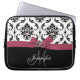 Monogrammed Black Damask Pink Bow Diamond Hearts Laptop Sleeve