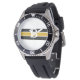 Monogrammed Black & Gold Striped Watch
