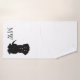 Bath towel set, consisting of a face cloth, hand towel and bath towel with a black Labrador dog design. You can customise this bath towel set with any text of your choice. Should you require any help with customising then contact us through the message link on this page. Labrador dog design bathroom towel set