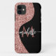 Monogrammed Black Rose Gold Blush Pink Glitter Case-Mate iPhone Case