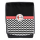 A personalised backpack with a black and white chevron pattern. You can customise this product by adding your own initial and name to the centre of the monogram logo.