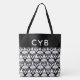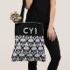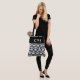 This design features a solid black colour on the top and a black and white henna pattern on the bottom. You can give this bag a personal touch by customising it with your three initials. This product is also available in a medium size.