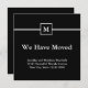 This moving announcement can be customised with your monogram, name and new address. At the top, there's a square for your monogram. The text is white. The background is black.