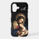 Design features a black background to a reproduction of the 17th-century painting of Mary and the Christ Child by Giovanni Battista Salvi. The initial you supply is displayed at top right in an elegant white font.