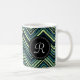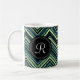 Monogrammed Blue Black Tribal Chevron Pattern Coffee Mug