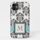 Monogrammed Blue Brown Damask Case-Mate iPhone Case