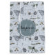 This Monogrammed Blue Bugs and Insects Boy Shower Medium Gift Bag features a cute insects pattern of hand-drawn hand-drawn ladybugs, butterflies, dragonflies, worms, caterpillars & bees in a soft pastel colour palette against a blue background, monogrammed with baby's initial and name on both front and back. Perfect for Baby Showers, New Baby, Kids Birthdays, etc.
