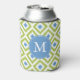 Monogrammed Blue Green Ikat Diamonds Pattern Can Cooler