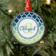 Monogrammed Blue Green Moroccan Lattice Pattern Metal Ornament