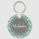 Monogrammed Blue & Grey Chevron Pattern Key Ring