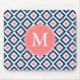 Monogrammed Blue Navy Diamonds Ikat Pattern Mouse Pad