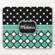 Monogrammed Blue Quatrefoil Lattice Polka Dot Mouse Pad